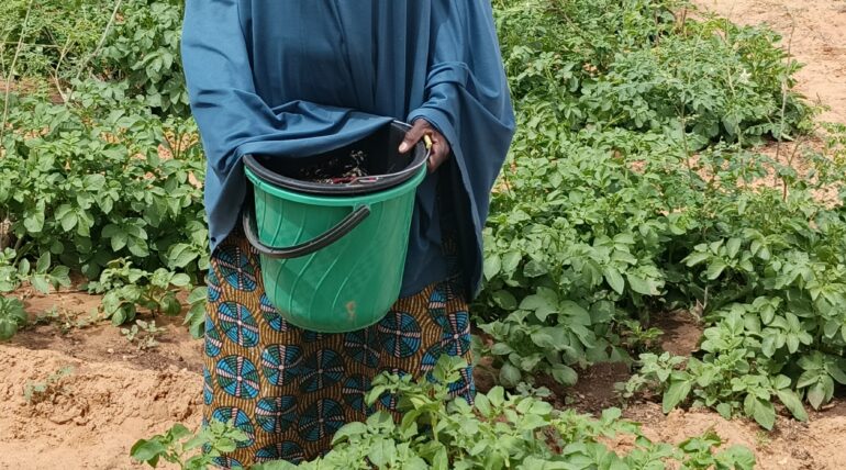 Je m’appelle Hadiza Guissa, productrice de pomme de terre . Je fais partie des bénéficiaires des semences de pomme de terre distribuées par la CCPHN dans le cadre du programme d’appui aux producteurs du PAIPA: Projet d’Appui à l’Intensification de la production agricole face aux effets du changement climatique et à l’insécurité dans les région de Tahoua, Dosso et Tillaberi.